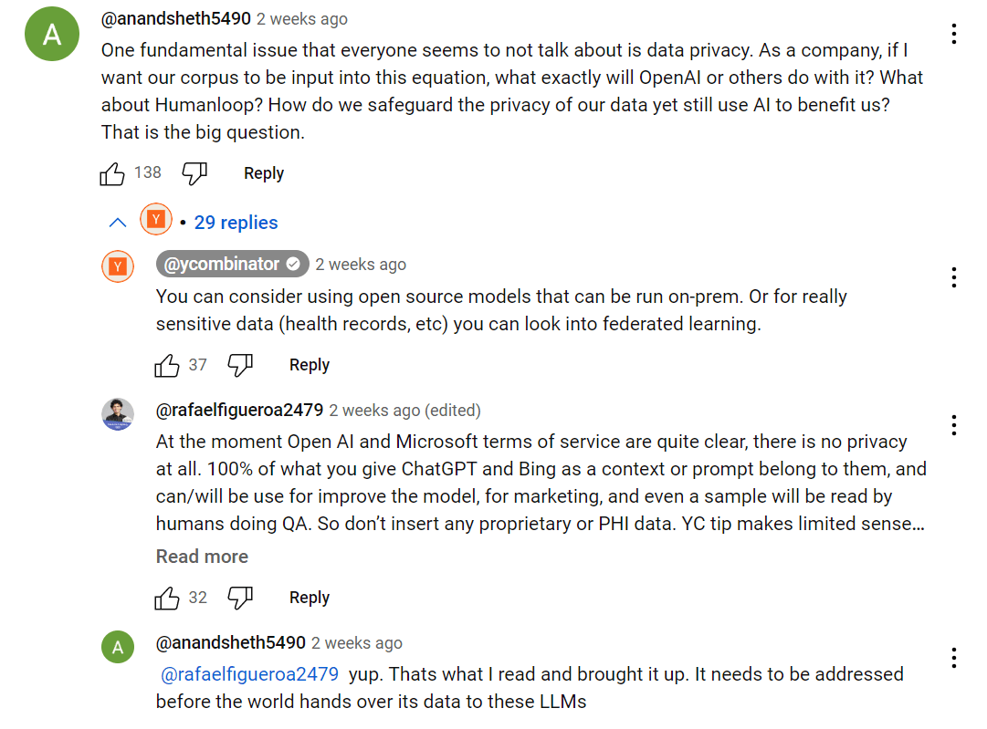 The episode in itself is very informative, but some comments below got my attention. Take this conversation for example. ‘What happens to the data that is used to train these models? What about privacy?”